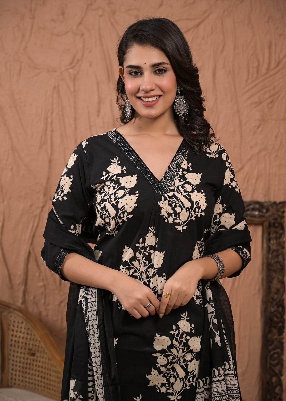 Premium Cotton Three Piece with Embroidery and Sequence Work on Neck