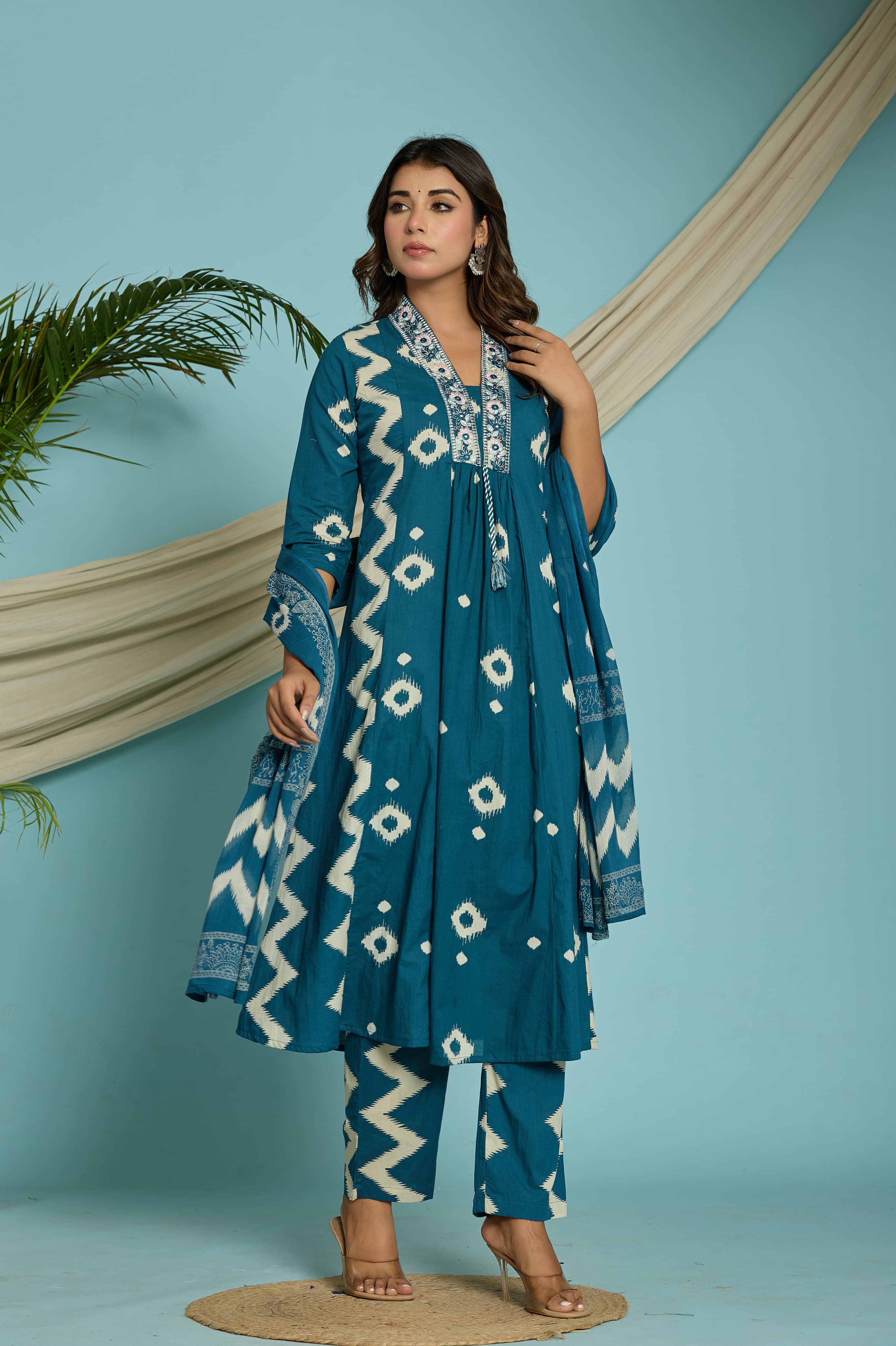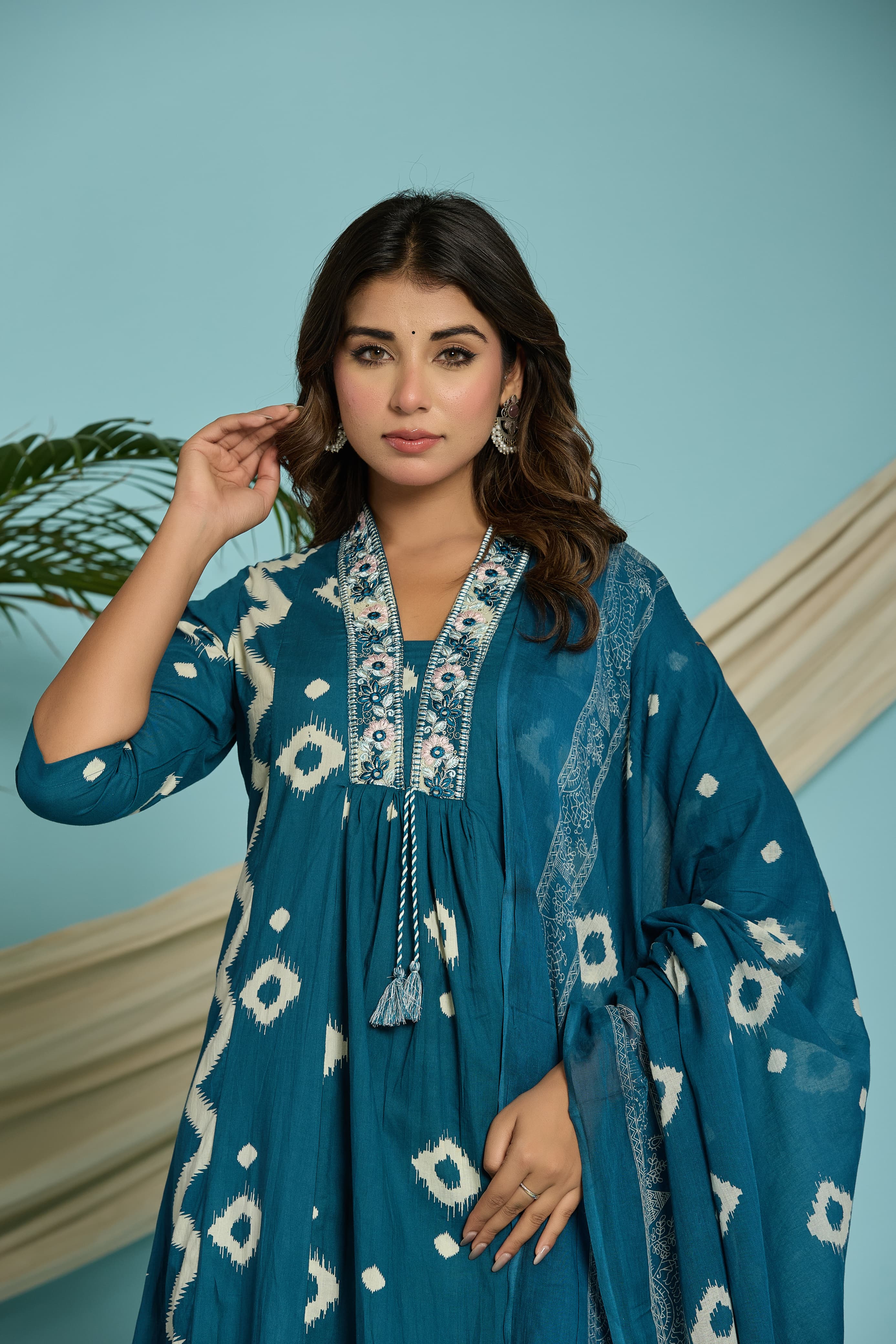 Premium Cotton Three Piece Set with Embroidery Sequence Work and tassels
